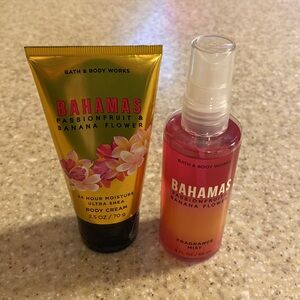 Bahamas passionfruit and banana flower fragrance mist and body cream set. This set is brand new with tags Item comes from my smoke free and pet free home.