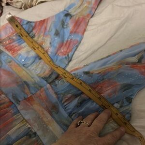 Step into elegance with this stunning sleeveless maxi dress from Lulu's, featuring a plunging neckline and a tiered skirt. The dress showcases a dreamy watercolor floral pattern in shades of blue and pink, perfect for making a statement at weddings or cocktail events.