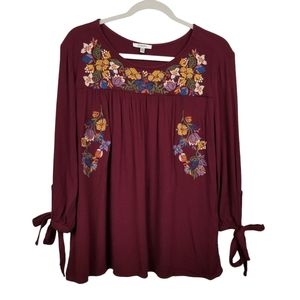 L Love Purple Sleeveless Dress Embroidered Flowers Ruffle Hem NWT Size L