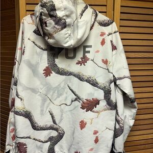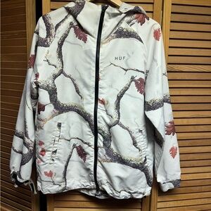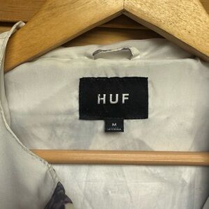HUF jacket with a distinctive pattern. Features white and brown colors.