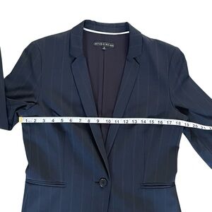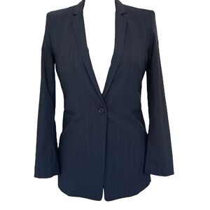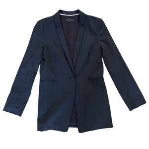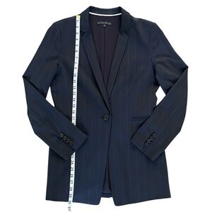 ANTONIO MELANI Navy Blue pin stripe long Blazer single breasted wool Sz: 8 NWOT