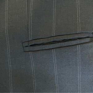 Color: navy blue with lighter blue pin stripes