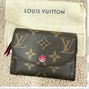 Elegant Louis Vuitton clutch. Features iconic monogram design. Rich brown leather with gold accents. Perfect for any occasion. I did however cut the wristlet part off to carry as just a wallet. That’s the only defect. Other than that it is in perfect condition!