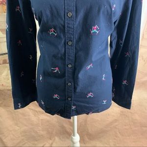 NEW Talbots Navy Embroidered Ski Print Button Down Shirt