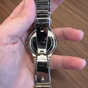 Elegant Michael Kors watch in silver. Features sparkling crystal accents. Perfect for any occasion.
