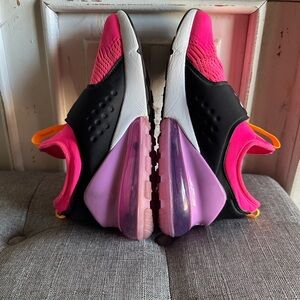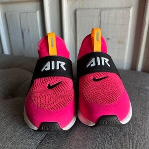 Experience the perfect blend of style and comfort with these Nike sneakers, featuring a striking pink and black color scheme. The Air Max unit in the heel provides exceptional cushioning, while the slip-on design with a supportive strap ensures a secure fit. Ideal for both casual outings and sporty activities, these sneakers are a must-have for any footwear collection.