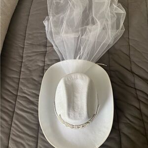 White Bride Cowboy Hat with Rhinestones