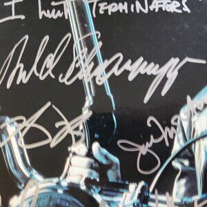 Signed by: Arnold Schwarzenegger, Linda Hamilton, Edward Furlong, Robert Patrick, Earl Boen, Joe Morton and Paul Winfield