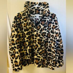 J. Crew Teddy Jacket Brown and Black Leopard Print Oversized Fit