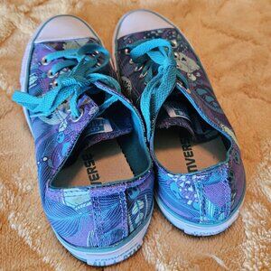 Women's Blue & Purple Tropical Skull Converse Low Top Shoes Canvas Sneakers Sz 7