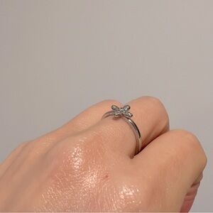 Diamonique Elegant Silver Cross Flower Ring