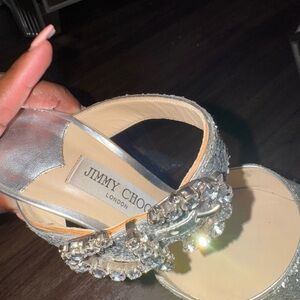 Jimmy Choo Silver Glitter Heels with Ankle Strap SOLD OUT and FREE SHIPPING!