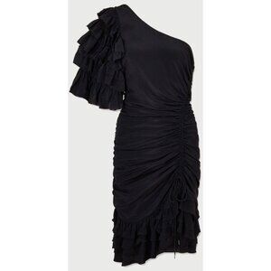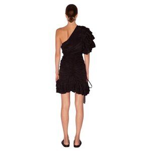 Magali Pascal Desa Black One-Shoulder Ruched Ruffle Adjustable Mini Dress Small