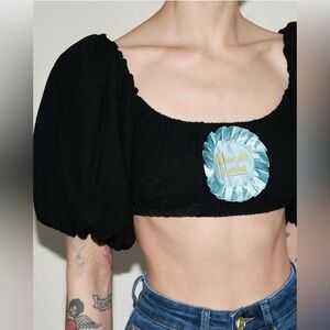 Damson Madder Maggie embroidered tie front scallop blouse. White cotton blouse with tie front detail. Oversized collar with scallop details. Puff sleeve with elasticized cuffs. In good condition, minor mark to arm and back label stitching coming undone. See all photos for details. Still a ton of wear left. This is a UK size 16 which is a US size 12.