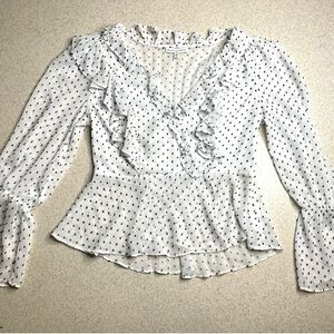 Anthropologie Madison D'Amelie White Ruffled Blouse with Black Polka Dots