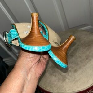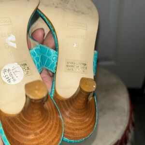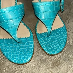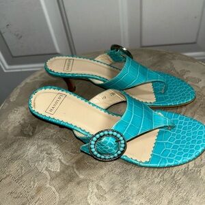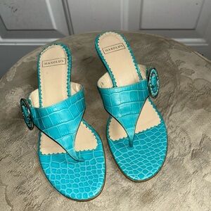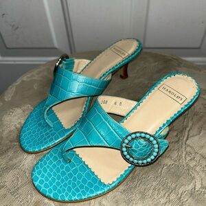 Harold's womens Turquoise 2" embossed print Sandals/Slides Sz 6B Made in italy