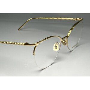 These Boucheron cat eye eyeglasses are crafted from metal and feature adjustable nose pads for a comfortable fit. Made in Italy, they come with clear, non-prescription lenses.