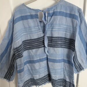 Anthropologie Cloth and Stone Blue Stripe Linen Blend Tie back Top medium NWOT