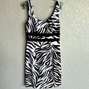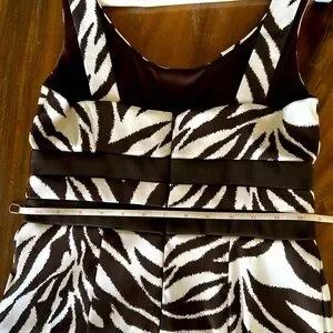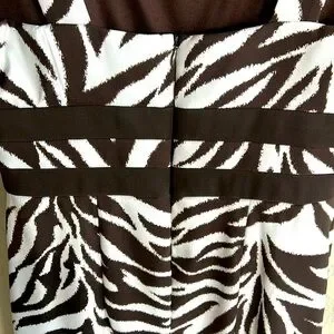 NWT Chic Zebra print in a beautiful dark brown and white! Fitted but has a bit of stretch, partial lining at the top if you choose to go bra less! Neckline has pleats so it lays flat across your chest. Hidden back zipper. Great Summer dress for a brunch or for work with a jacket or after 5 play! The weight of the fabric makes it perfect for packing without wrinkling. Nonsmoking seller. See pics for measurements.