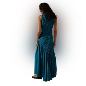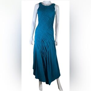 Free People Blurred Lines Midi Dress Blue Dark Teal Sz M 100% Cotton Gauze Sexy