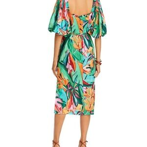 FARM RIO Women's Banana Foliage Multicolor Puffed Sleeve Midi Dress,