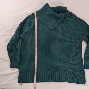 Woman Within Green Chunky Knit Foldover Collar Detailed Button Sweater