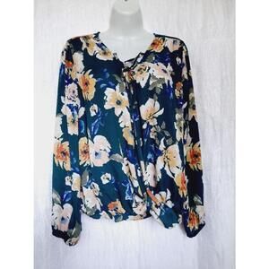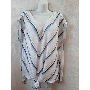 This is a Joy Lab long-sleeve top, new with tags. The top is a light beige color and features a textured, geometric pattern throughout. It has a crew neckline with a cutout detail at the chest. The sleeves have thumbholes at the cuffs. The material composition is 57% Rayon, 39% Polyester, and 4% Spandex. The size is Small. There are no visible imperfections.