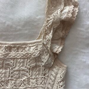 Brand New Anthropologie Cream Knitted Ruffled Crop Tank Top Size Small!!