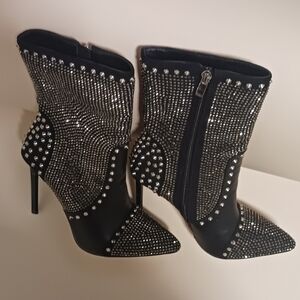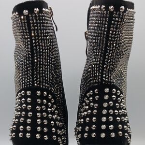 Elevate your style with these stunning studded black stiletto boots. Perfect for a night out, these boots combine elegance and edge.