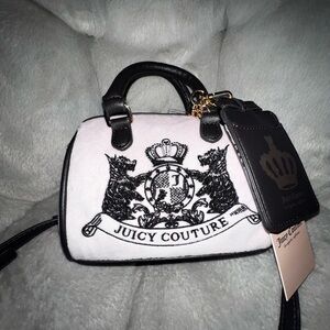 Discover the chic elegance of the Juicy Couture Blue Hobo Bag, designed with a slouchy silhouette and crafted from plush material. The bag's vibrant blue hue and signature embellishments make it a standout accessory for any occasion. Its unique crescent shape and decorative charms add a touch of sophistication to your ensemble.