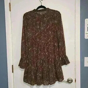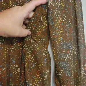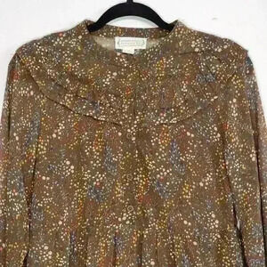Loveriche Boho Ruffle Sleeve Cottage Core Midi Dress Size M Ditsy Brown Floral