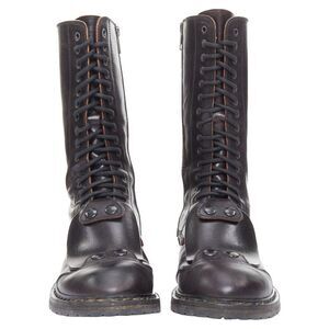 Delivery Duty Paid included – rare ANN DEMEULEMEESTER black leather snap button panels tall combat boots EU36Reference: JACG/A00267Brand: Ann DemeulemeesterMaterial: LeatherColor: BlackPattern: SolidClosure: Lace UpLining: Black LeatherExtra Details: Snap buttons with panels details.Made in: ItalyCONDITION:Condition: Very good, this item was pre-owned and is in very good condition. Please refer to image gallery for thorough condition check. Minor creases at ankle. Slight uneven colors at leather maybe due to original distressed design.SIZINGDesigner size: EU36Size reference: EU36 / US6 / UK3 / JP23.5Ann Demeulemeester. This Ann Demeulemeester .