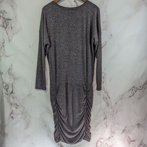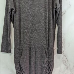 Athleta Dress Womens Medium Brown Mini Taupe Long Sleeve Scoop Ruched