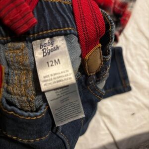 These OshKosh B'gosh a classic jean style in dark blue denim with vibrant red suspenders. The straight leg design offers a timeless look, perfect for any casual occasion.