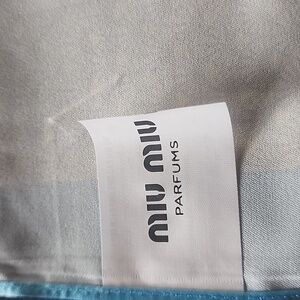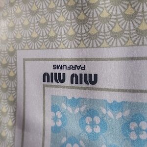 miu miu...Elegant scarf with a floral pattern in blue and green. Perfect for adding a touch of style.