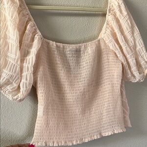 Lucy Paris Cream Puff Sleeve Wrap front Blouse size large EUC