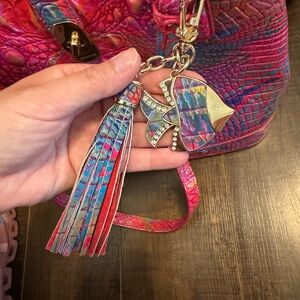 Discover the elegance of the Brahmin tote, showcasing a captivating croc-embossed texture in a stunning pink and purple color scheme. This sophisticated bag offers a structured design, making it a standout accessory for any occasion. Its luxurious finish and bold hues ensure you make a statement wherever you go.