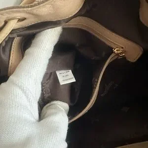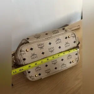 MCM Cream Crossbody Bag with Iconic Logo and Adjustable Strap