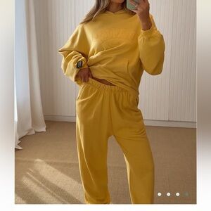 Stylish pink track pants by Aviator Nation. Features bold red and orange side stripes. Comfortable fit with elastic waistband and cuffs.