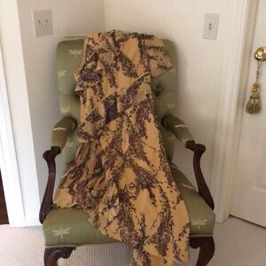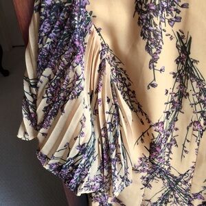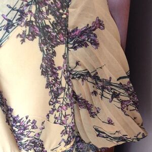 This stunning sundress by KEEPSAKE the Label features a mustard yellow and purple palette, perfect for a cocktail night out. The asymmetrical neckline and 3/4 pleated sleeves add a touch of elegance, while the ruffled, tiered design creates a playful silhouette. Crafted for style and comfort, this dress is a must-have for any fashion-forward wardrobe.This lovely piece is in excellent condition!