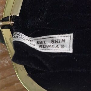 This black clutch is crafted from a glossy Genuine EEL Skin , offering a sleek and minimalist design. Its compact shape and smooth surface make it a versatile accessory for any occasion a touch of elegance to its overall appearance. See Pictures EUC no signs of wear Double coin 1970s