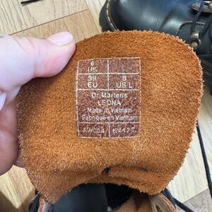 These Dr. Martens boots boast a sleek black leather finish, complemented by chunky laces and a substantial platform sole. The rugged design and military-inspired silhouette offer both style and durability, making them a versatile addition to any collection.