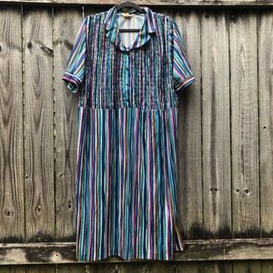 Pact midi-length shirt dress in dark forest green 100% organic cotton. Long sleeves with two buttons at each cuff, so the sleeves can be rolled up. Buttons all the way down the front. Collared neck, unlined, has pockets. Looks great with or without a belt. Excellent used condition, no flaws. Size L.
