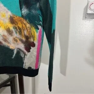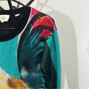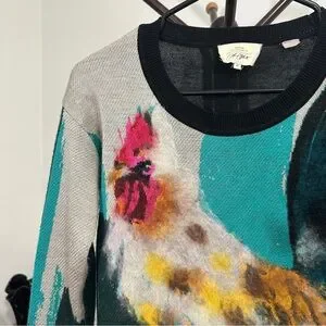 Anthropologie Womens XS Sweater Rooster Artwork Lauren C Walcott Wool Blend
