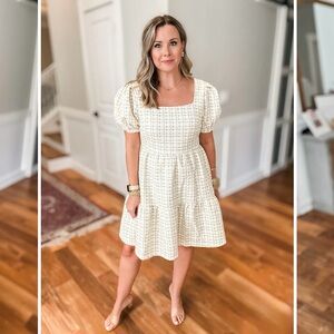 NWT! Featuring a classic tan yellow and white plaid pattern, button up front and collared neck. Made from 100% soft cotton and a from pocket on left chest