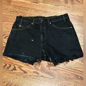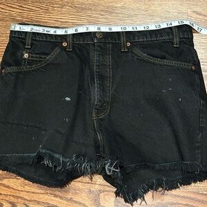 Levi's 550 Vintage Orange Tab Black with Paint Distressed Cutoff Jean Shorts