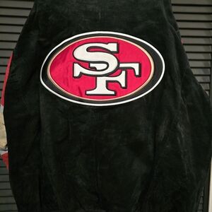 NFL jacket with vibrant red and black design. Features official logo patch.