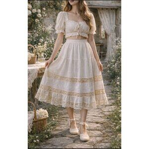New Size XS 100% Linen Pleated Academia Preppy Coquette Mini Skater Skirt White
