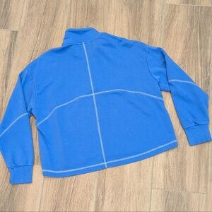 Like new and worn once. Stay comfortable and stylish with this blue half-zip sweatshirt. Perfect for casual outings or layering in cooler weather.