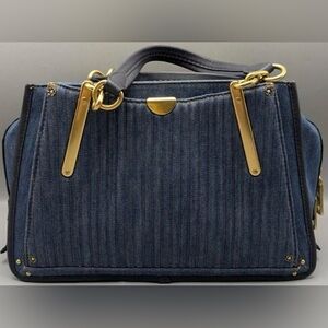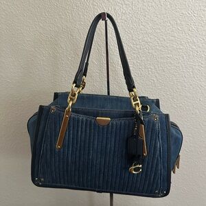 Authentic Coach Quilted Denim Leather Trim Dreamer Satchel